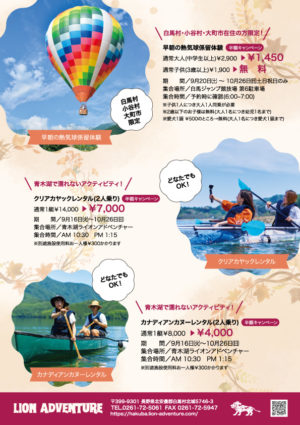 長野県白馬村でアウトドア 熱気球 ラフティング